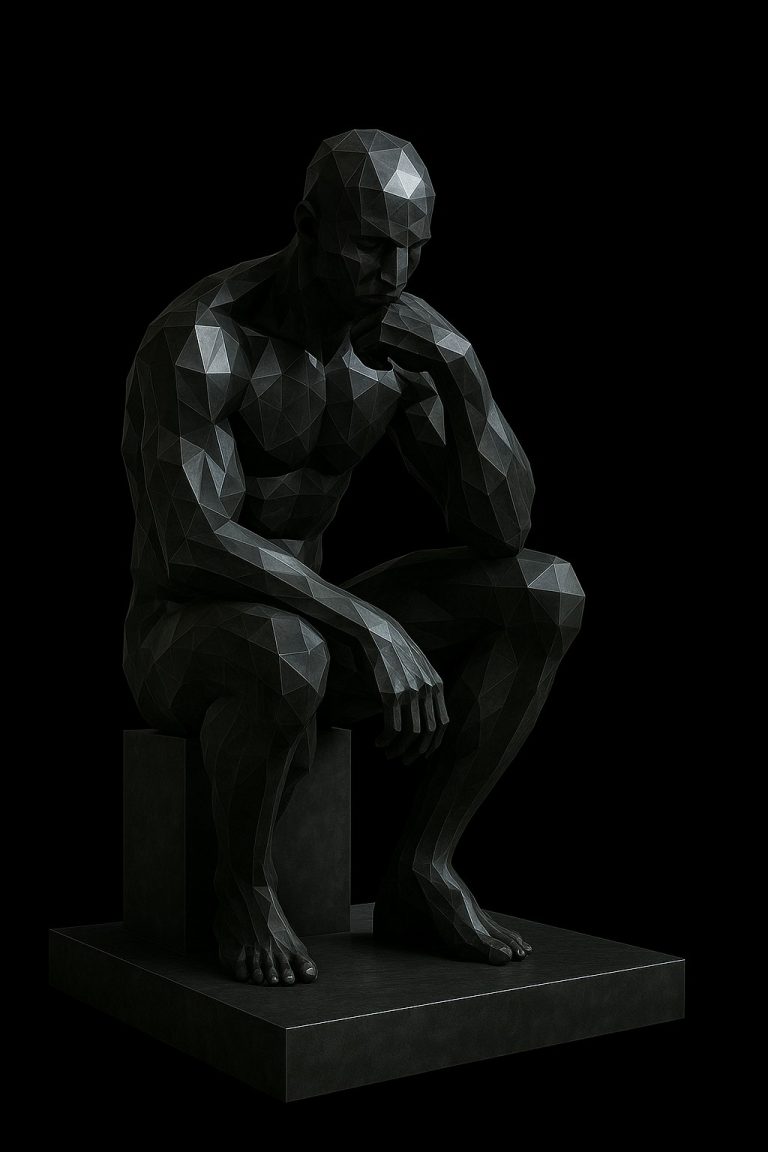 Inspirada en la introspección y la profundidad del pensamiento humano, “El Pensador Contemporáneo” reinterpreta la clásica figura del pensador en un lenguaje poligonal moderno. El cuerpo musculoso, tallado en formas geométricas limpias, representa la fuerza del intelecto y la reflexión en tiempos de constante evolución.