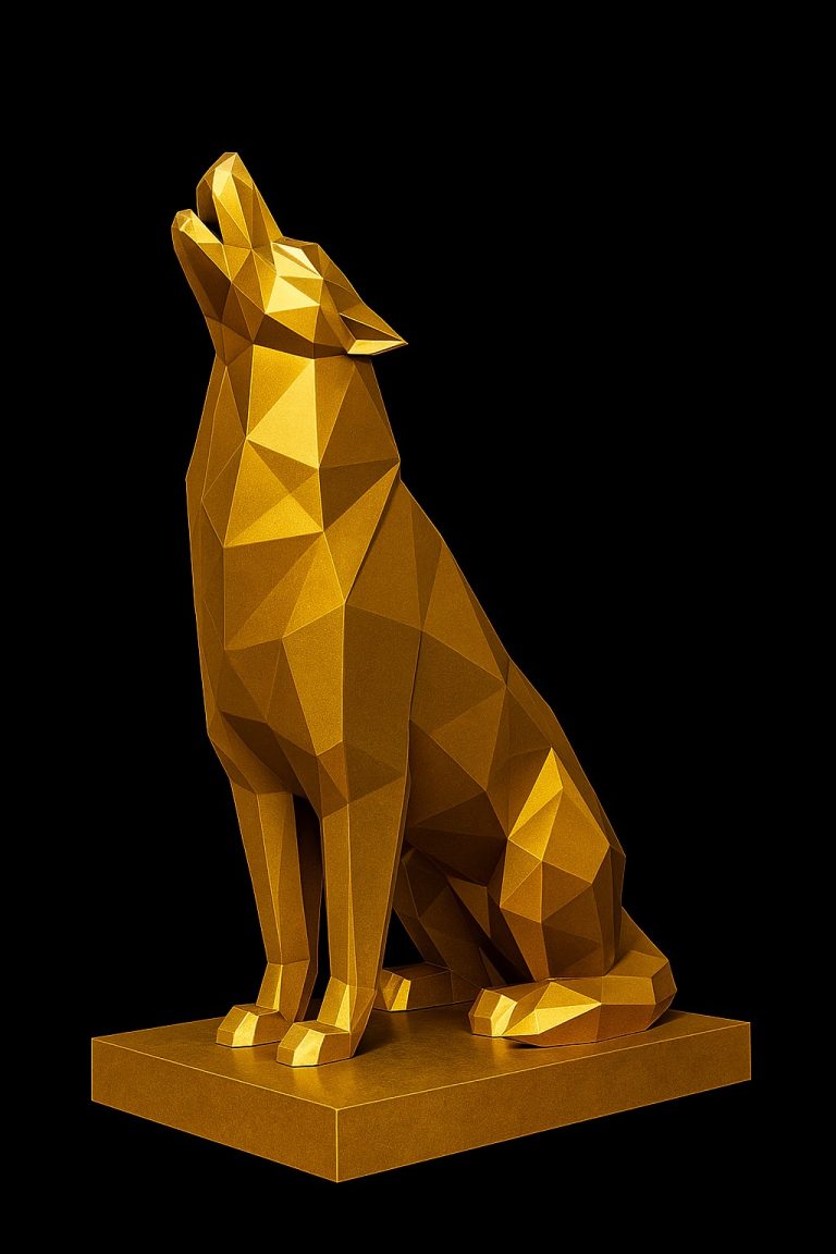 Un lobo en actitud alerta, erguido y majestuoso. Con un diseño poligonal de líneas geométricas precisas, esta obra combina fuerza, elegancia y una estética contemporánea. Es una pieza ideal para quienes desean transmitir poder y sobriedad con una silueta animal que simboliza lealtad, liderazgo y conexión con la naturaleza.